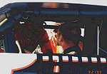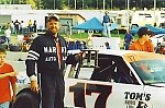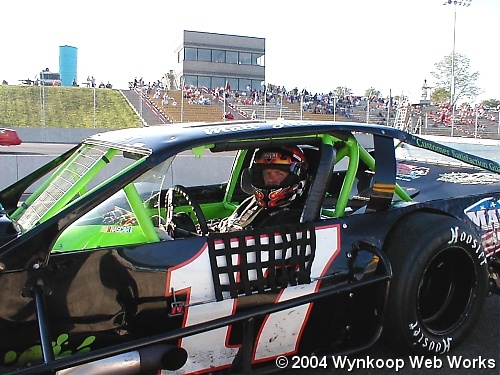 Tony gets buckled in for his strongest feature run yet on 6-11-04 at Chemung Speedrome