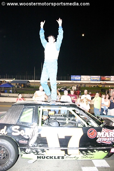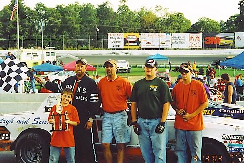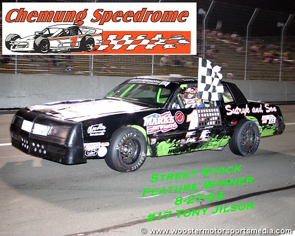Tony wins the Street Stock feature at Chemung Speedrome 8-27-04 (Photo courtesy of Wooster Motorsports Media