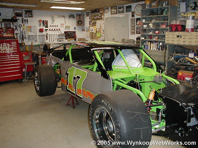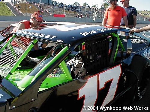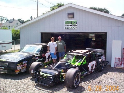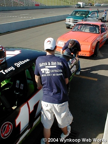 The crew gets Matt's car ready for some practice laps at Chemung on 7-2-04.